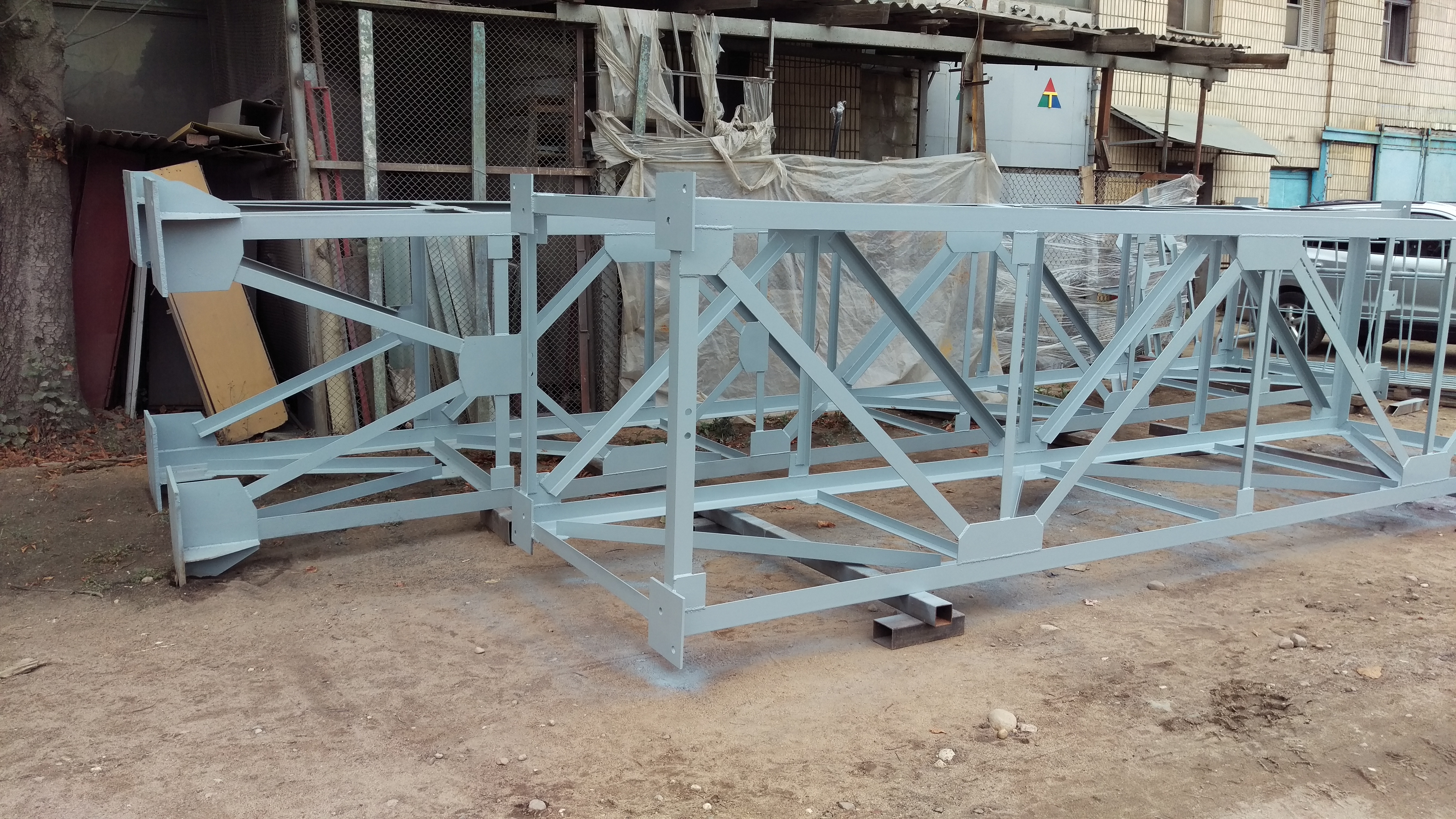 Опора дымовой трубы. Возможно изготовление опор любых размеров по вашим желаниям. Покрытие - цинкосодержащая антикоррозионная краска.